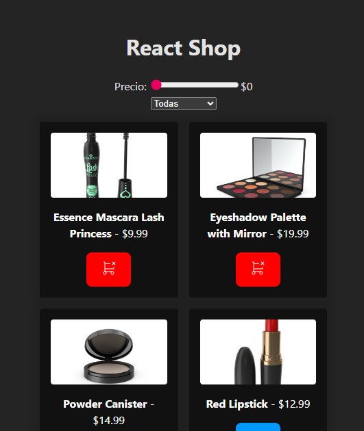 - Filtrado de Productos: Integré funcionalidades de filtrado de productos por precio y categoría. Esta es una habilidad esencial en cualquier aplicación de e-commerce y fue un punto clave para mi comprensión de cómo manipular y presentar grandes conjuntos de datos de manera eficiente.